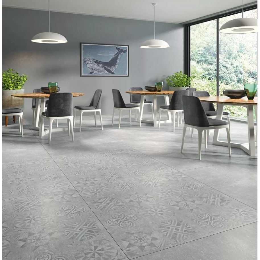 Керамогранит Идальго Граните Стоун Цемент Классик Декор – это идеальное решение для тех, кто ценит стиль и качество в отделке интерьеров. С размерами 1200x600 мм, этот плиточный материал обладает не только впечатляющими габаритами, но и уникальными эстетическими характеристиками, которые делают его универсальным для различных стилей оформления.