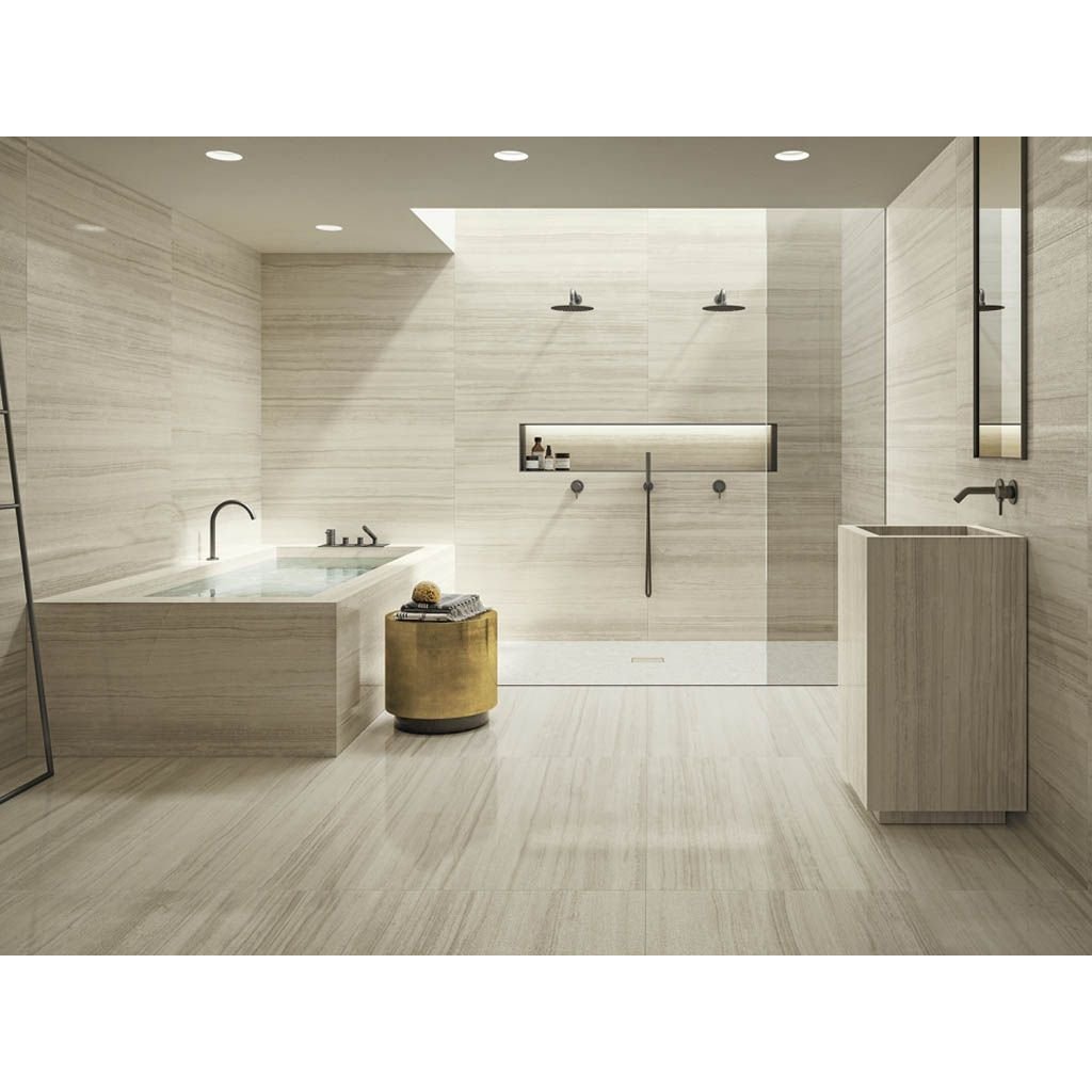 Керамогранит под мрамор Charme Advance от Italon отличает яркая и выразительная графика, благодаря чему этот материал прекрасно подходит для реализации самых интересных дизайнерских решений. Он вдохновлен эксклюзивными сортами мрамора с динамичными направленными прожилками, которые обладают невероятной красотой. Гамма коллекции представлена в семи роскошных цветах: Кремо Деликато, Платинум Уайт, Алабастро Уайт, Силк Грэй, Травертино Романо, Элегант Браун, Палиссандро Дарк. Эти оттенки прекрасно подойдут для создания изысканного интерьера, который поражает своим великолепием и где главным элементом является керамогранит под мрамор. Утонченность и благородство мрамора представлены гаммой керамогранита в формате 60x120 в патинированной поверхности, а также в формате 80x160 в традиционной натуральной поверхности и роскошной поверхности люкс. Линейка керамогранита дополнена матовой настенной плиткой из белой глины в формате 40x80 в трех цветах: Кремо Деликато, Платинум Уайт и Алабастро Уайт.