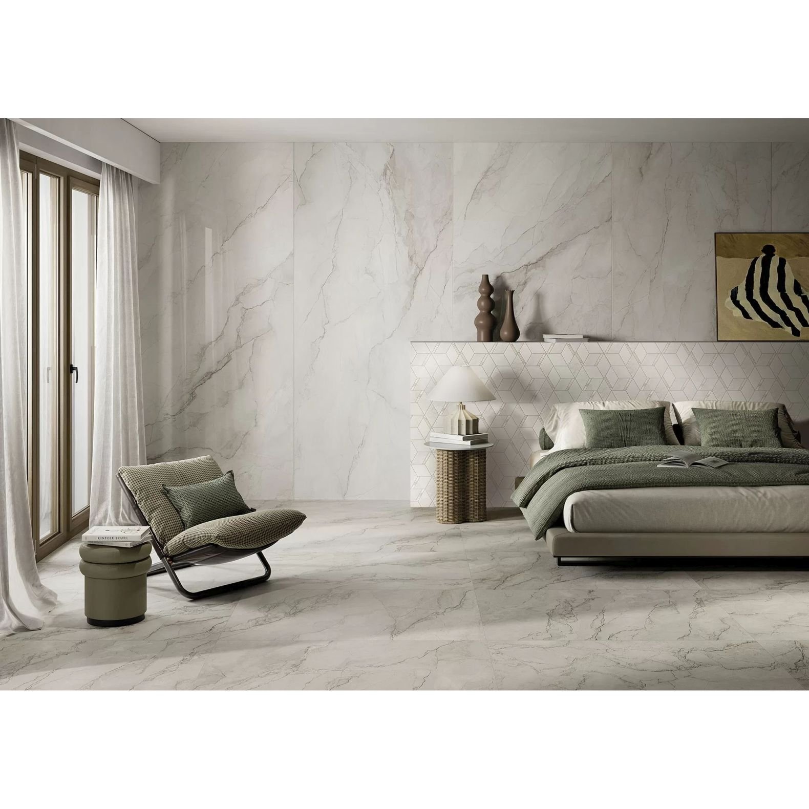 Керамогранит AVA BOLGHERI STONE WHITE RETT имеет размер 60x120 см и лаппатированную поверхность. Он выполнен в белом цвете и имитирует натуральный камень.