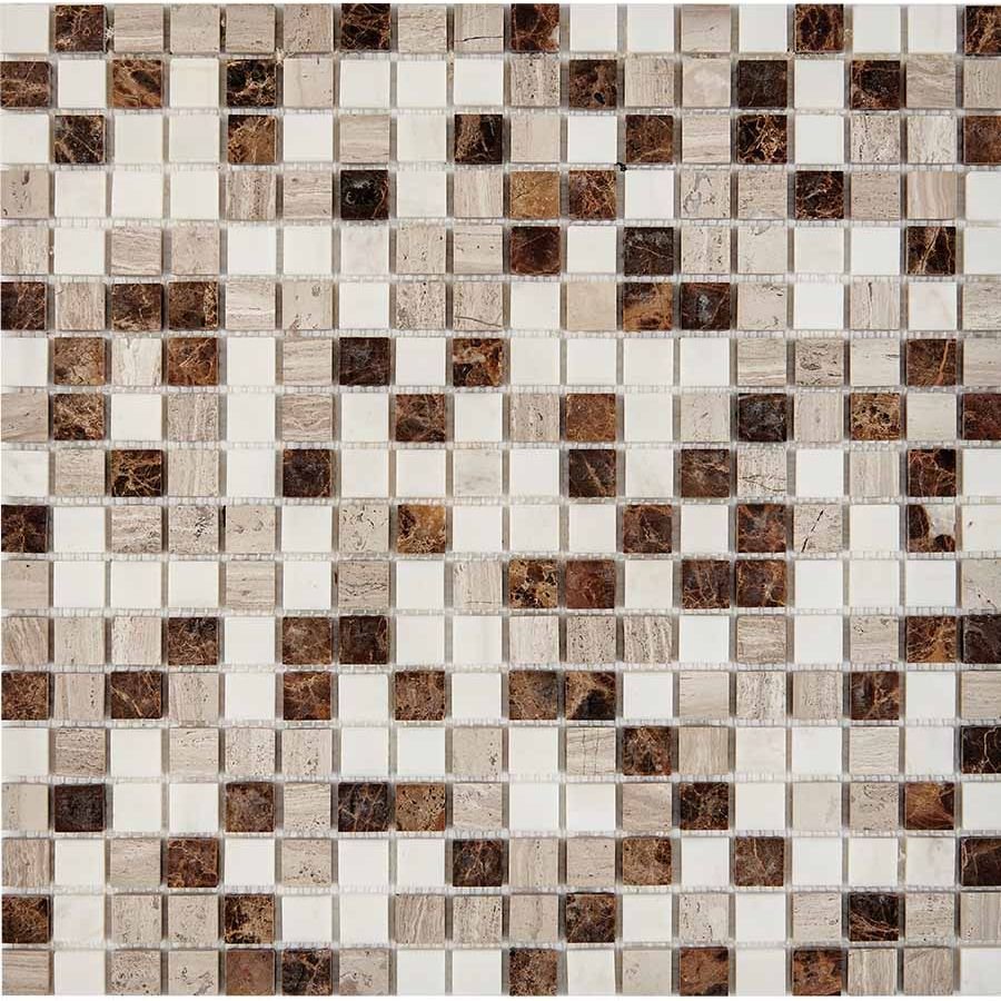 Мозаика Pixmosaic (Пиксмозаик) Мрамор Emperador Dark, White Wooden, Dolomiti Bianco 30,5х30,5 см (PIX277)