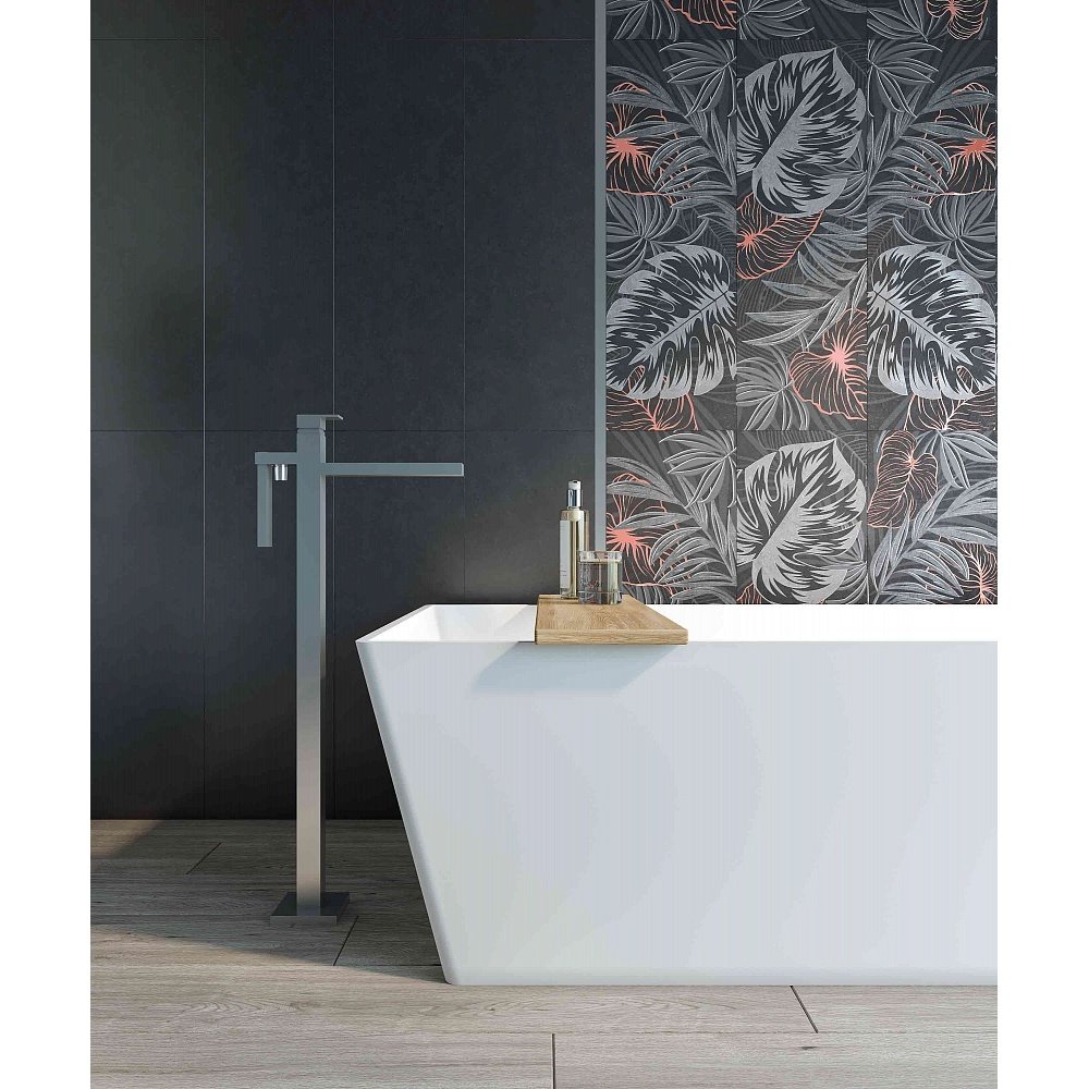 Коллекция керамической плитки Pandora — это модные тропические мотивы, которые только недавно сошли с мировых подиумов и теперь прочно обосновались в интерьерной моде. Сочетание нежных флоральных рисунков с брутальной бетонной текстурой дает контрастный эффект, который так любят дизайнеры. Тропические листья на темном фоне создают ощущение глубины пространства, благодаря чему даже маленькая ванная комната будет казаться визуально больше.