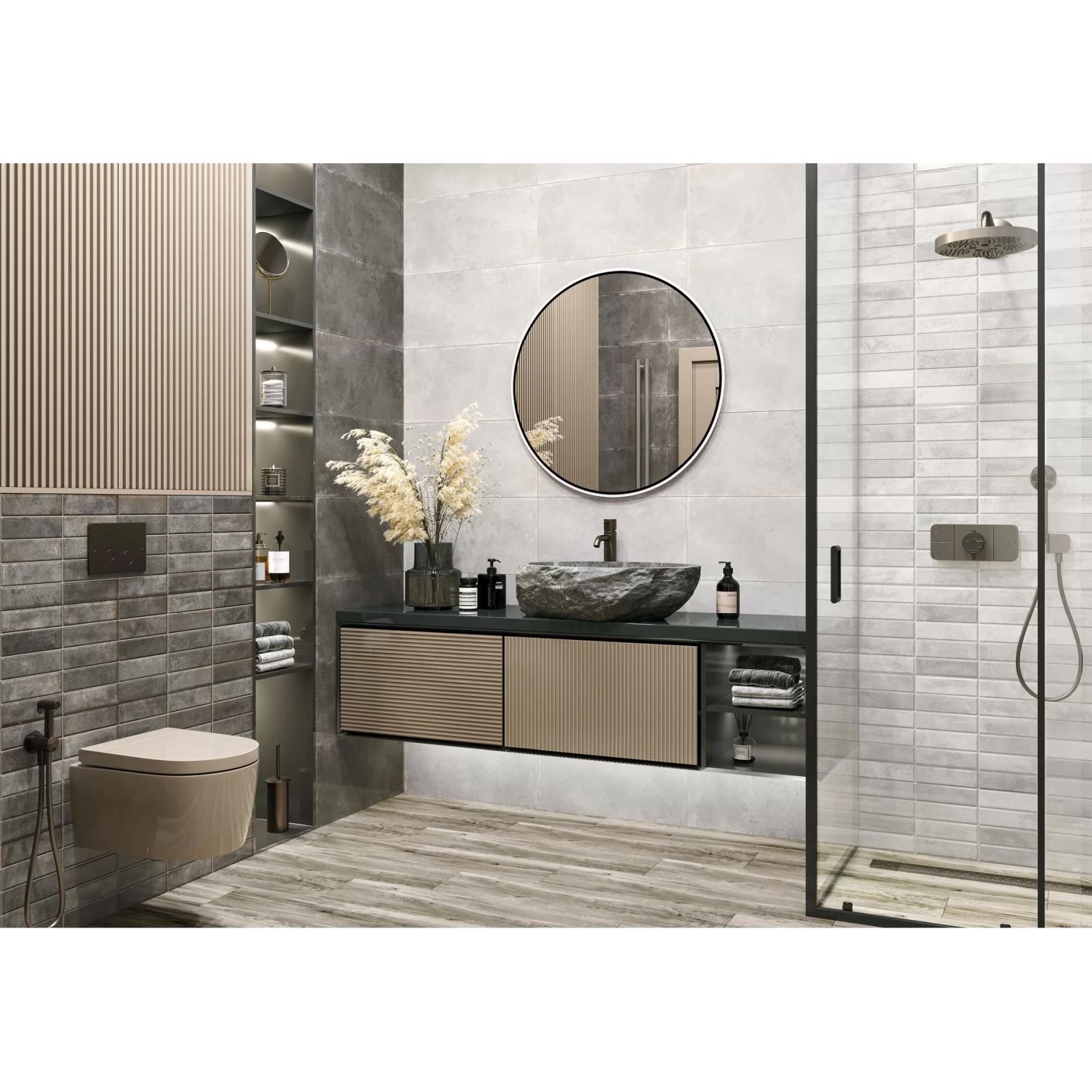 Эта плитка выполнена в элегантном сером цвете с текстурой, напоминающей кирпичную кладку, что придаёт вашему пространству уникальный и современный вид. Elbrus Brick Gray отлично сочетается с различными стилями оформления, от минимализма до лофта, добавляя изысканности и тепла.