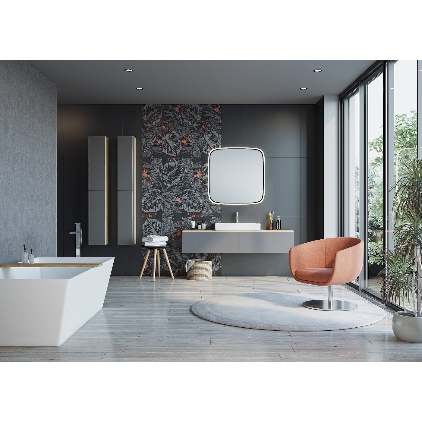 Коллекция керамической плитки Pandora — это модные тропические мотивы, которые только недавно сошли с мировых подиумов и теперь прочно обосновались в интерьерной моде. Сочетание нежных флоральных рисунков с брутальной бетонной текстурой дает контрастный эффект, который так любят дизайнеры. Тропические листья на темном фоне создают ощущение глубины пространства, благодаря чему даже маленькая ванная комната будет казаться визуально больше.