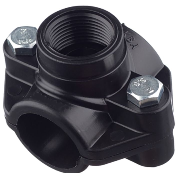 Водоотвод с внутренней резьбой. Предназначена для быстрой установки на трубу, при помощи зажимных болтов. Седелки полиэтиленовые хорошо зарекомендовали себя, как элементы быстрой врезки, а так же как герметичные резьбовые отводы, без разрезания трубы.