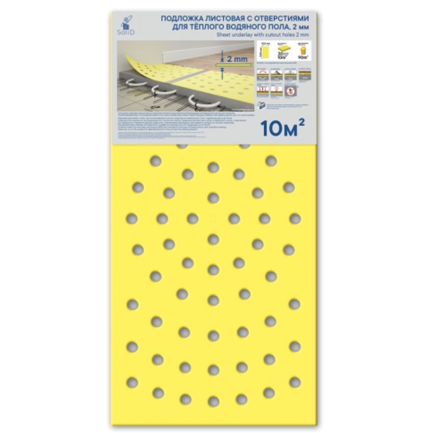 Подложка Солид (Solid) листовая с отверстиями, для теплого водяного пола 2 мм, желтая 1000х500х2 мм (10м2)