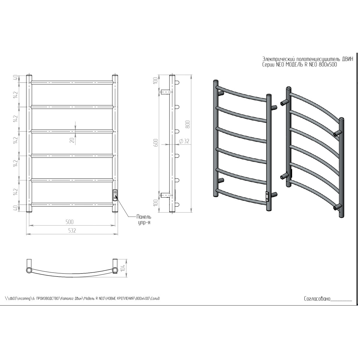 Полотенцесушитель электрический Двин (Dveen) R neo 80х40 см, без полки, К диммер графит