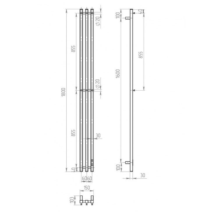 Полотенцесушитель электрический Двин (Dveen) X-3 neo 180х12 см, 1х1/2″ К диммер полированный хром