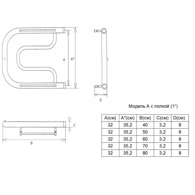 Полотенцесушитель водяной Двин (Dveen) A 32х60 см, c полкой, 1х1/2″ К0 полированный хром