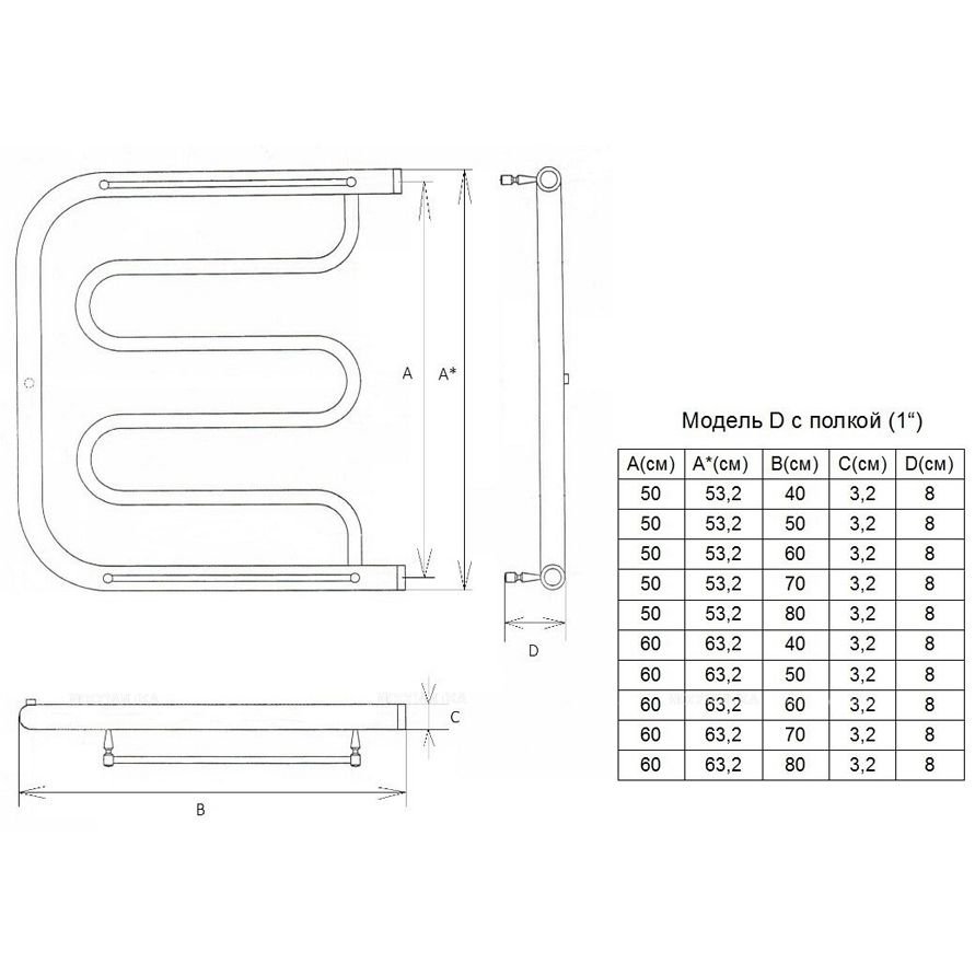 Полотенцесушитель водяной Двин (Dveen) D 50х50 см, c полкой, 1х1/2″ К0 полированный хром