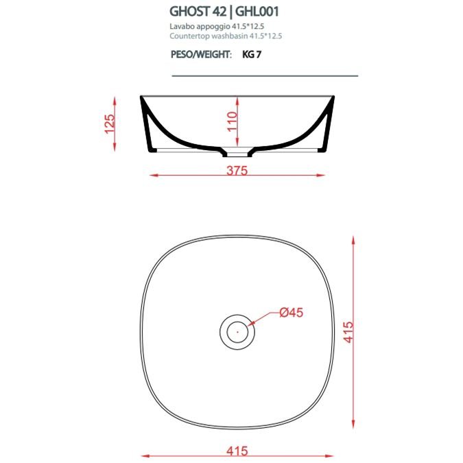 Раковина Artceram (Арткерам) Ghost 42 см, без отверстий, накладная, без слив-перелива, цвет: белый GHL001 01 00