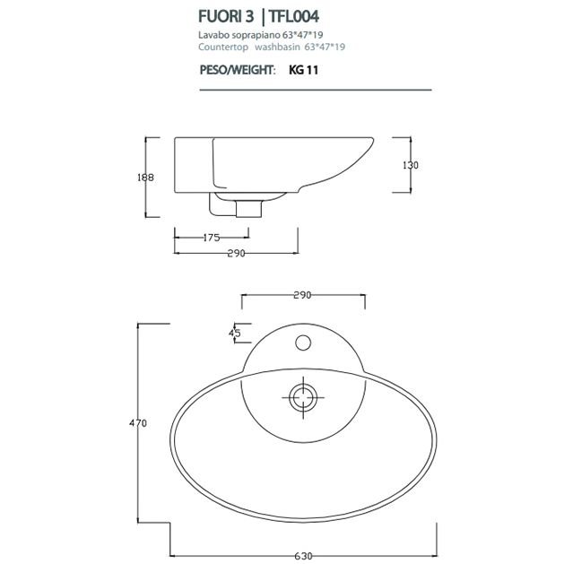 Комплектация:Artceram Washbasins Fuori 3 Раковина накладная 63х47 см, с 1 отв под смеситель, цвет белый. p>