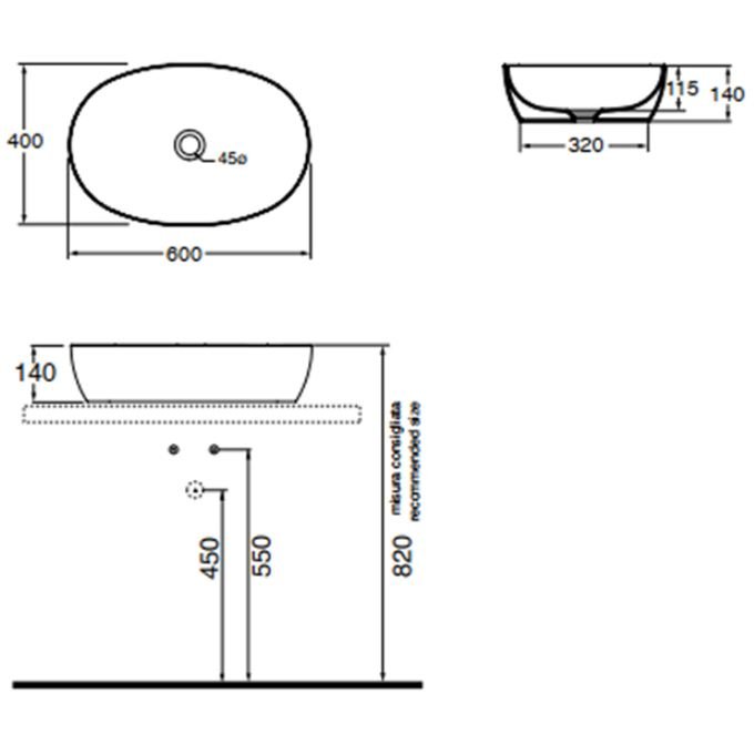 Раковина Azzurra (Аззурра) Elegance Circle накладная, 60x40xH14 см, без отверстий, без перелива, цвет: Bianco lucido ELLA060400C0BI/(ECI60 bi*0)