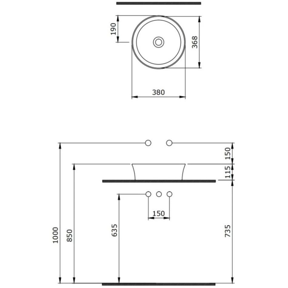 Накладная раковина из санфаянса Berges Ego SL диаметром 38 см. Высота 11,5 см.