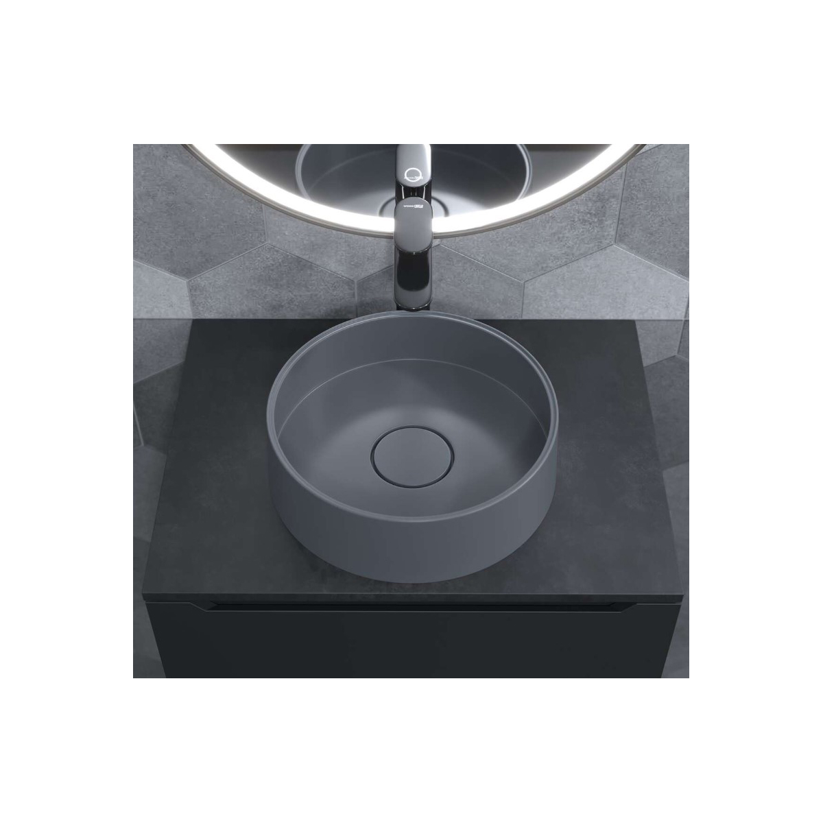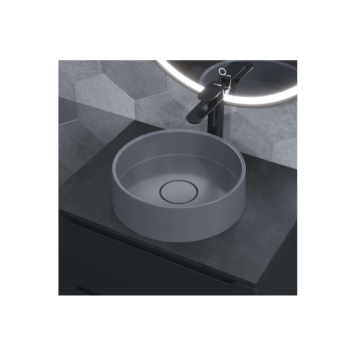 Раковина для ванной накладная кварцевая Uperwood (Упервуд) Tanos Quartz, 35 см, круглая, бетон RTanosQuartz35B