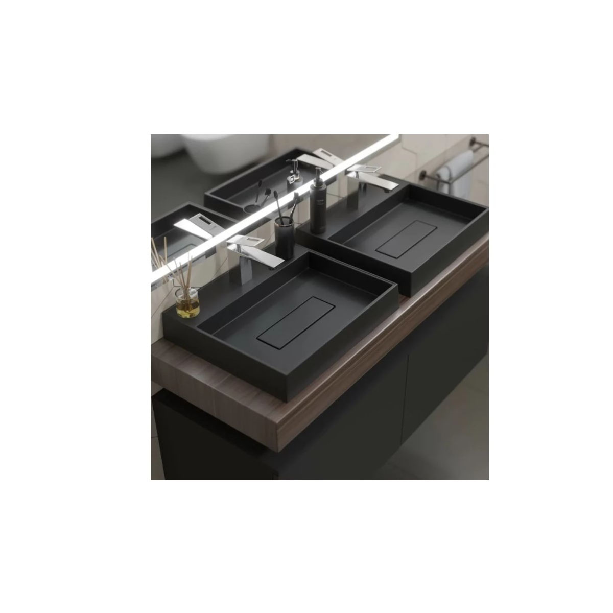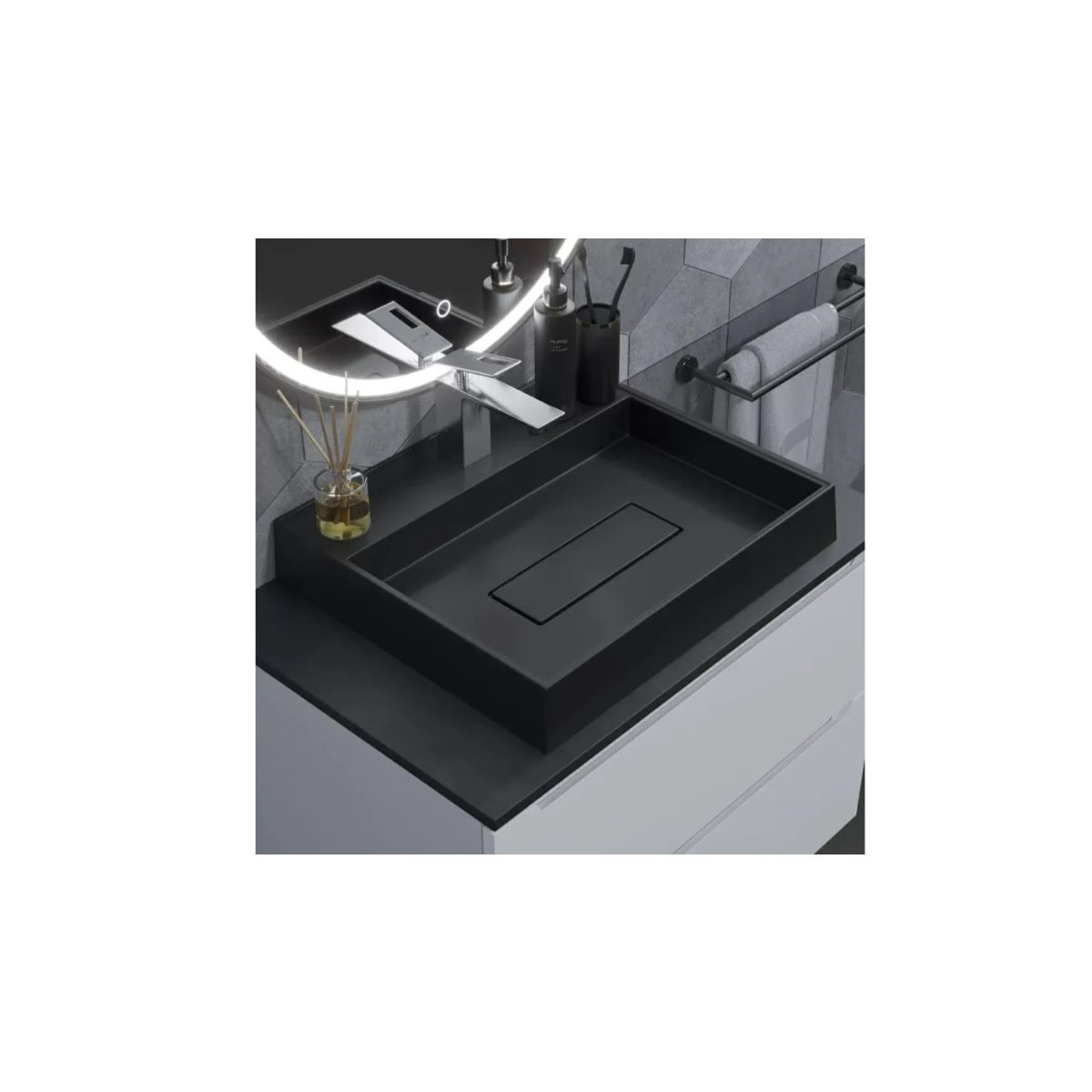 Раковина для ванной накладная кварцевая Uperwood (Упервуд) Tanos Quartz, 50 см, прямоугольная, с декоративной накладкой, уголь 2911030051