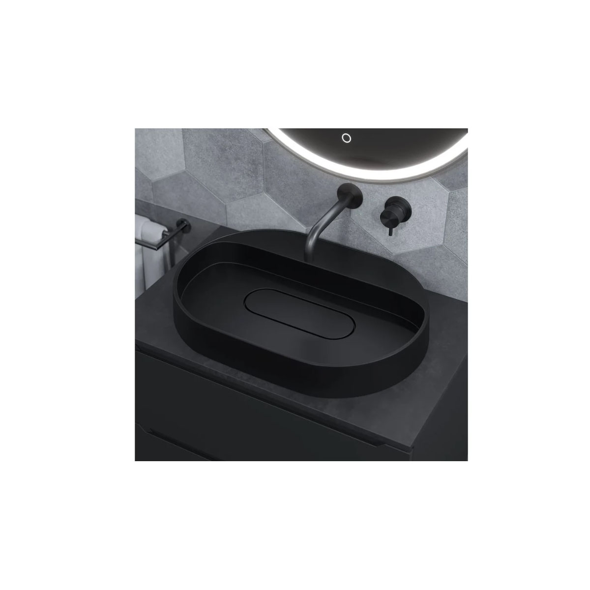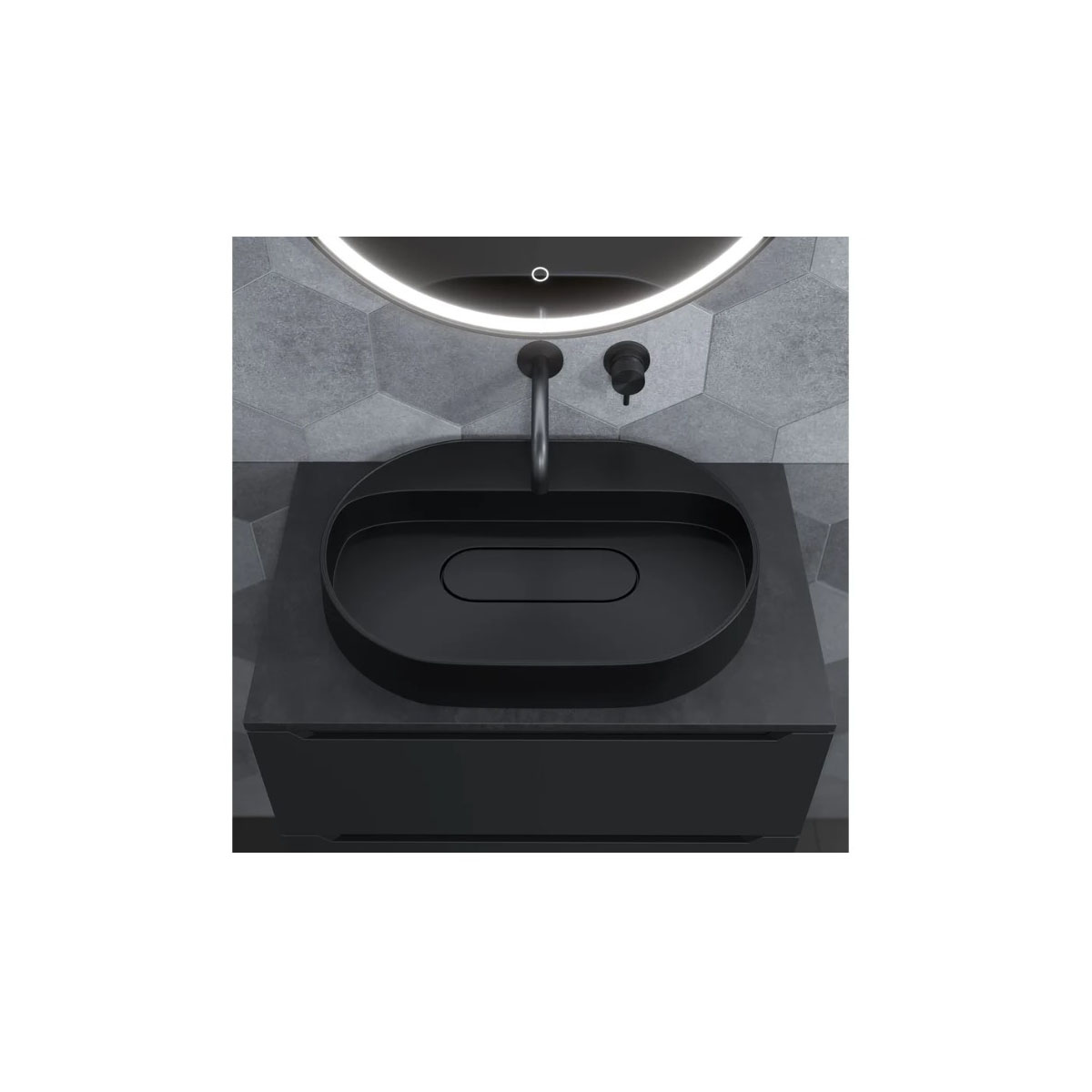 Раковина для ванной накладная кварцевая Uperwood (Упервуд) Tanos Quartz, 55 см, овальная, с декоративной накладкой, без отверстия для смесителя, уголь RTanosQuartz55U