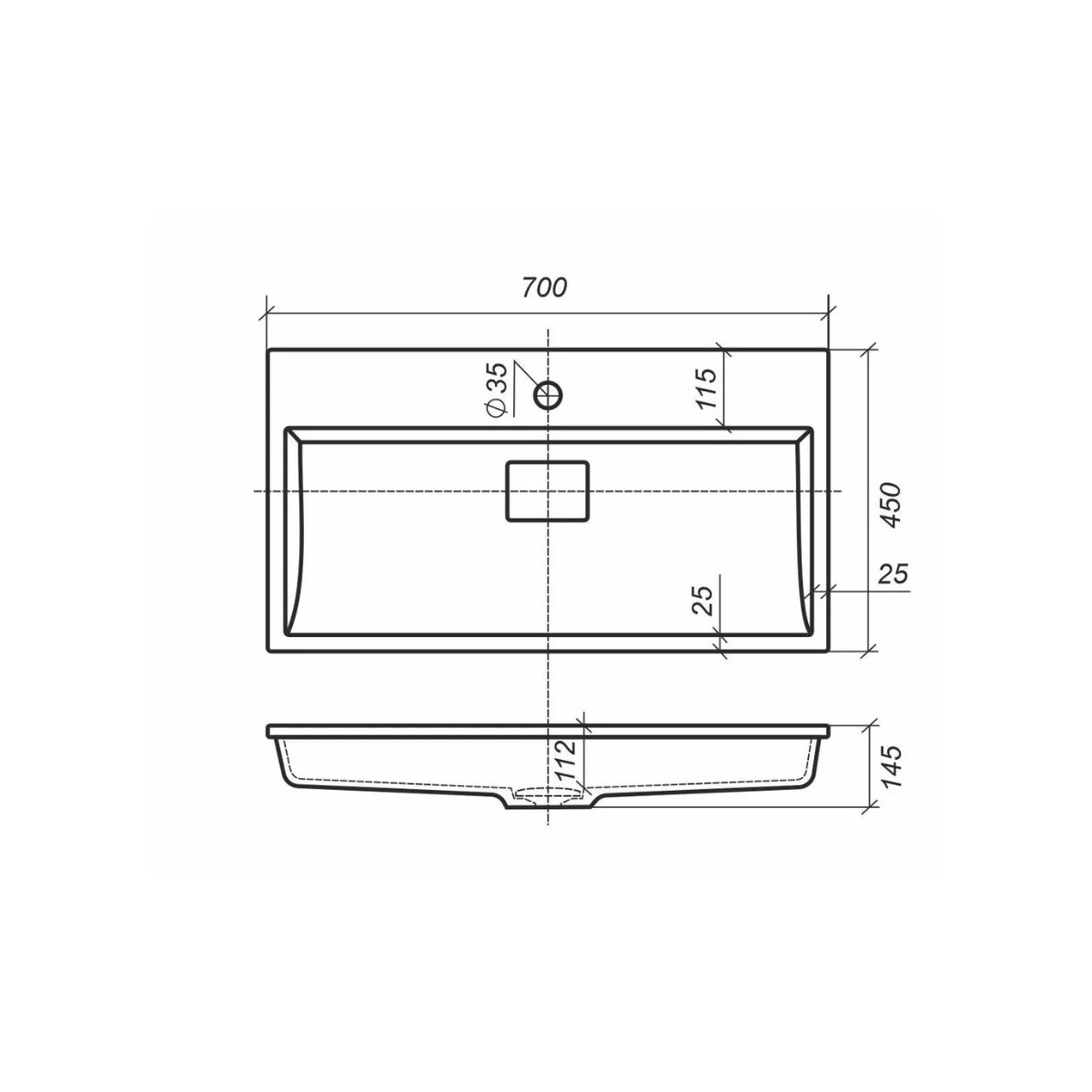 Раковина для ванной полувстраиваемая Uperwood (Упервуд) Barsa, 70 см, прямоугольная, белый 2911020345