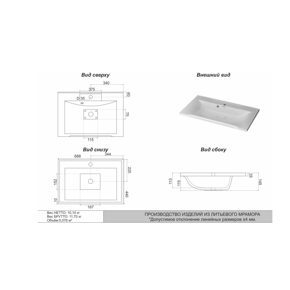 Раковина для ванной комнаты от бренда Uperwood из коллекции Elen выполнена из литьевого мрамора и предназначена для установки на тумбу. Искусственный (литьевой) мрамор обладает рядом преимуществ относительно изделий из сантехнического фарфора. Специальное покрытие раковины - гелькоут, обеспечивает защиту изделия от механических и химических повреждений.