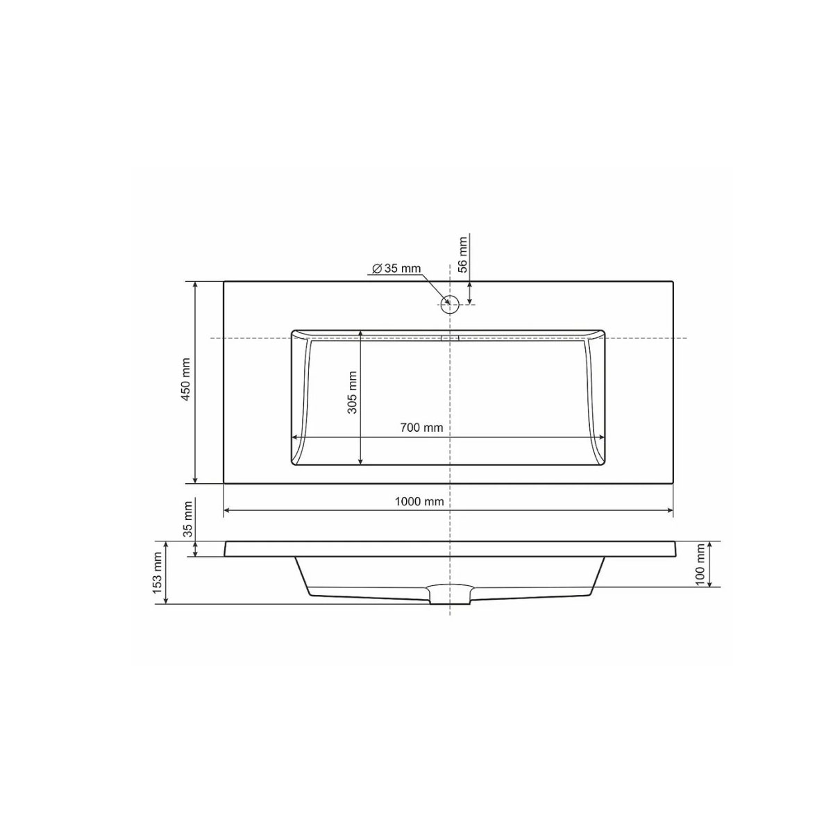 Раковина для ванной полувстраиваемая Uperwood (Упервуд) Infinity, 100 см, прямоугольная, белый глянцевый 45383433000