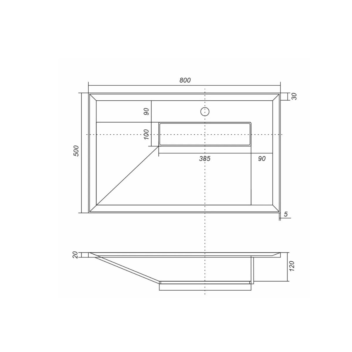 Раковина для ванной полувстраиваемая Uperwood (Упервуд) Lotus, 80 см, прямоугольная, белый глянцевый 35490000000