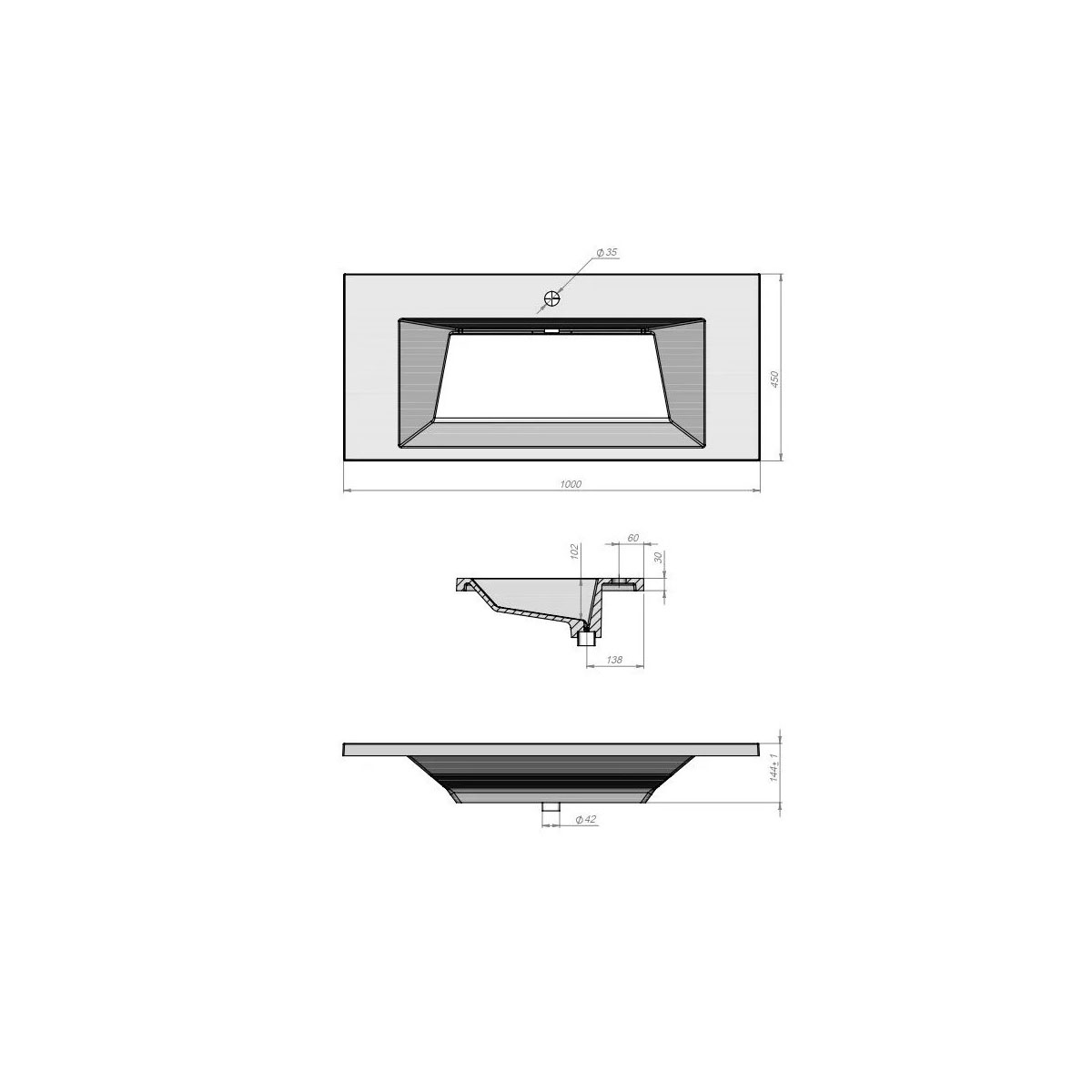 Раковина имеет отверстие для установки смесителя, а также бортик для размещения ванных принадлежностей. Раковина оснащена щелевым сливом, в качестве сливной арматуры подойдет стандартный сифон.