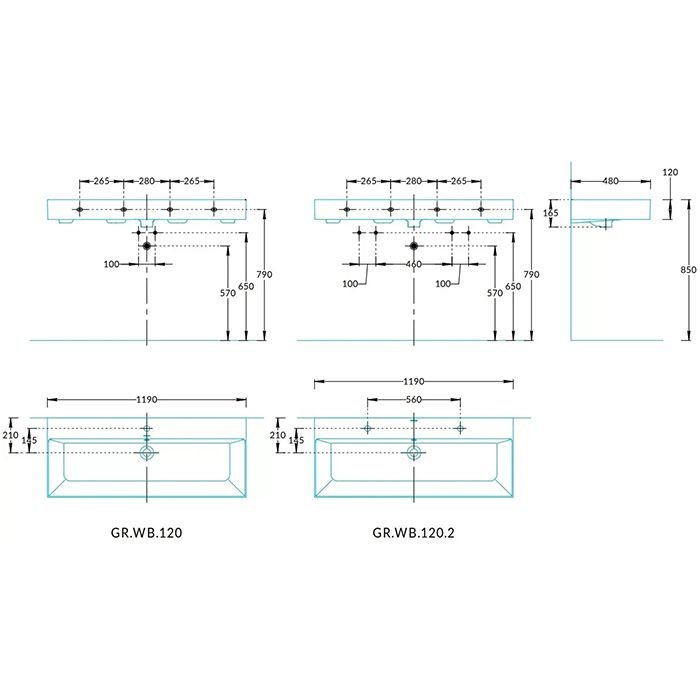 Раковина Kerama Marazzi (Керама Марацци) Grande подвесная 119.5х18 см, 2 отверстия, цвет: белый глянцевая GR.wb.120.2