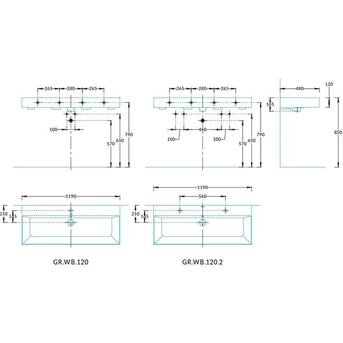 Раковина Kerama Marazzi (Керама Марацци) Grande подвесная 119.5х18 см, с 1 отверстие, цвет: белый глянцевая GR.wb.120