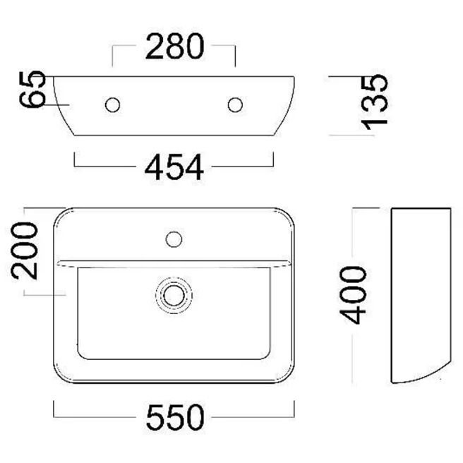 Раковина Kerama Marazzi (Керама Марацци) Plaza подвесная 55х40 см, с 1 отверстие, цвет: белый глянцевый PLR.wb.55.02