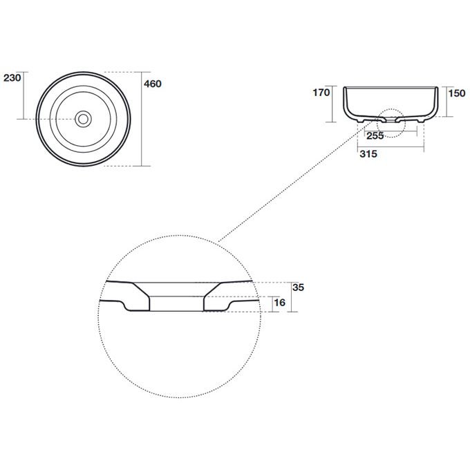 Изготовленная из высококачественного керамического материала, раковина обладает высокой прочностью и долговечностью. Она устойчива к механическим повреждениям и легко очищается, что делает её практичным выбором для повседневного использования. Накладная конструкция позволяет легко устанавливать раковину на любую подходящую поверхность, а отсутствие перелива обеспечивает дополнительную безопасность и комфорт.