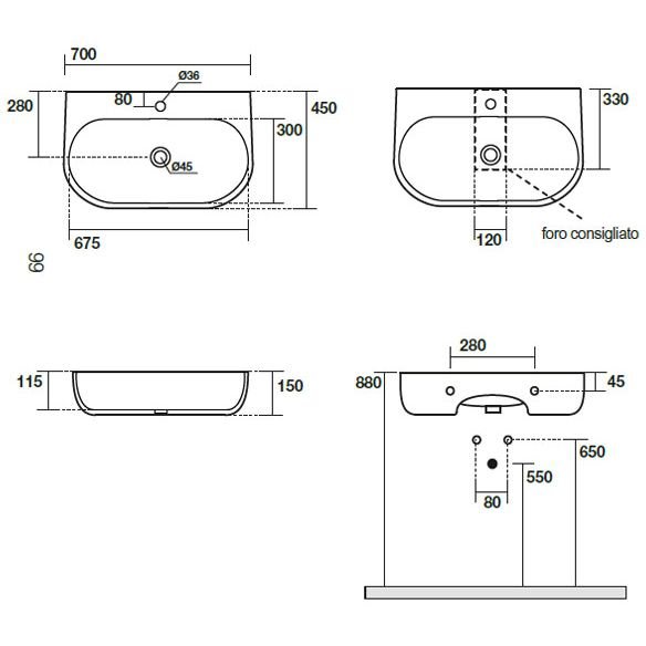 Комплектация:Kerasan Nolita Раковина подвесная/накладная 70х45 см, с 1 отв под смеситель, цвет белый глянцевый p>