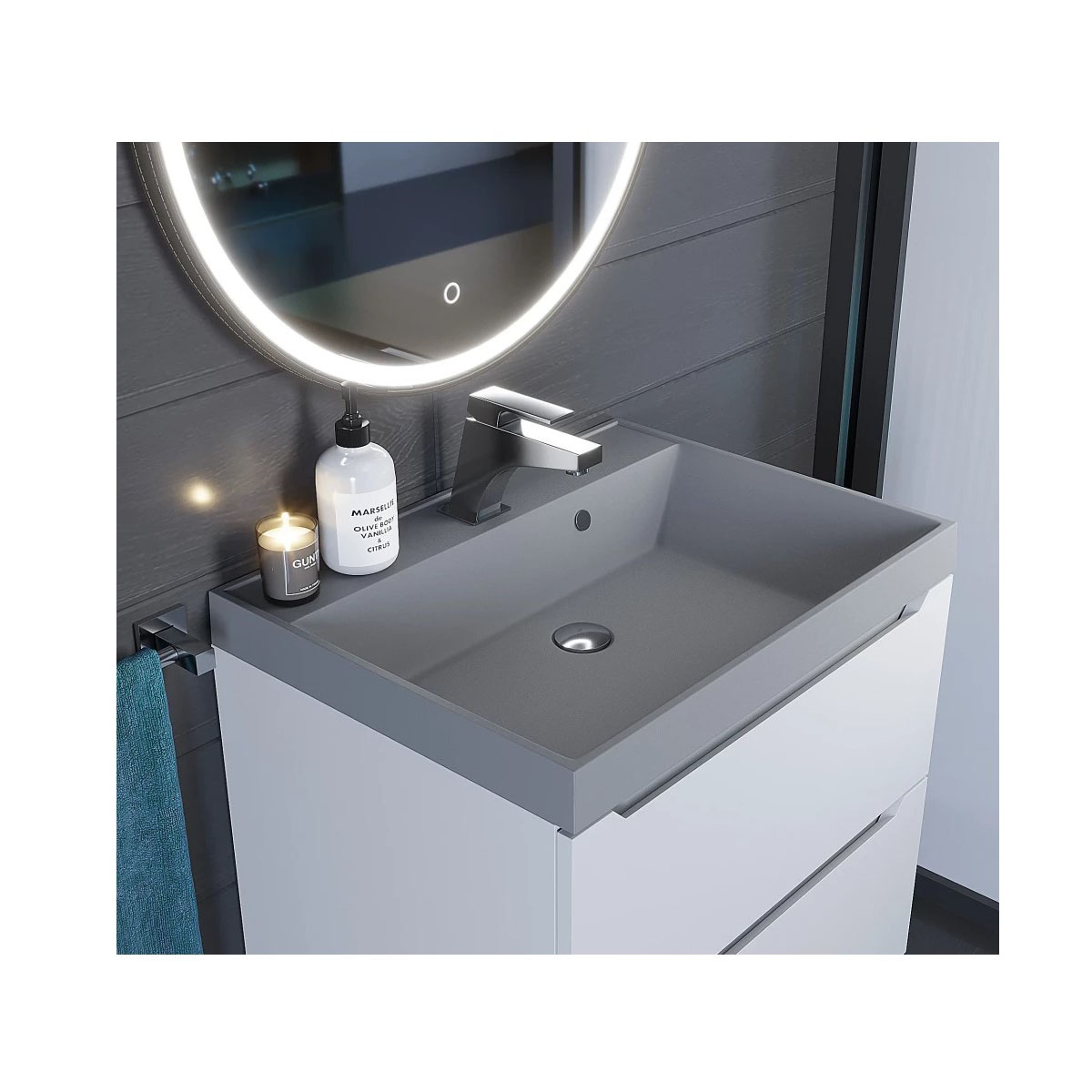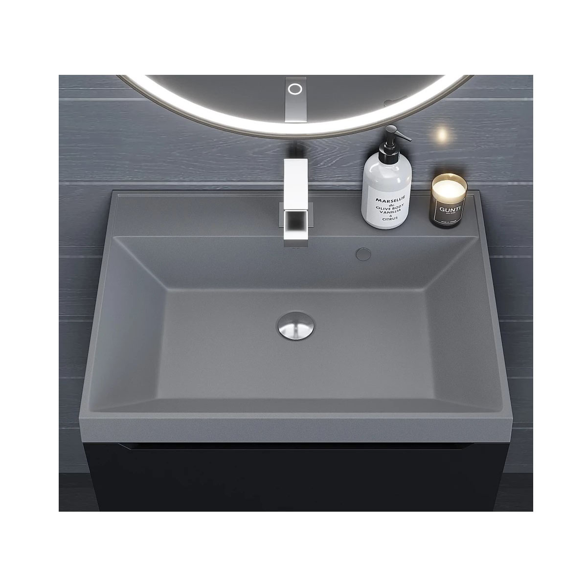 Раковина кварцевая для ванной Uperwood (Упервуд) Classic Quartz, 60 см, серый матовый, бетон 291030001