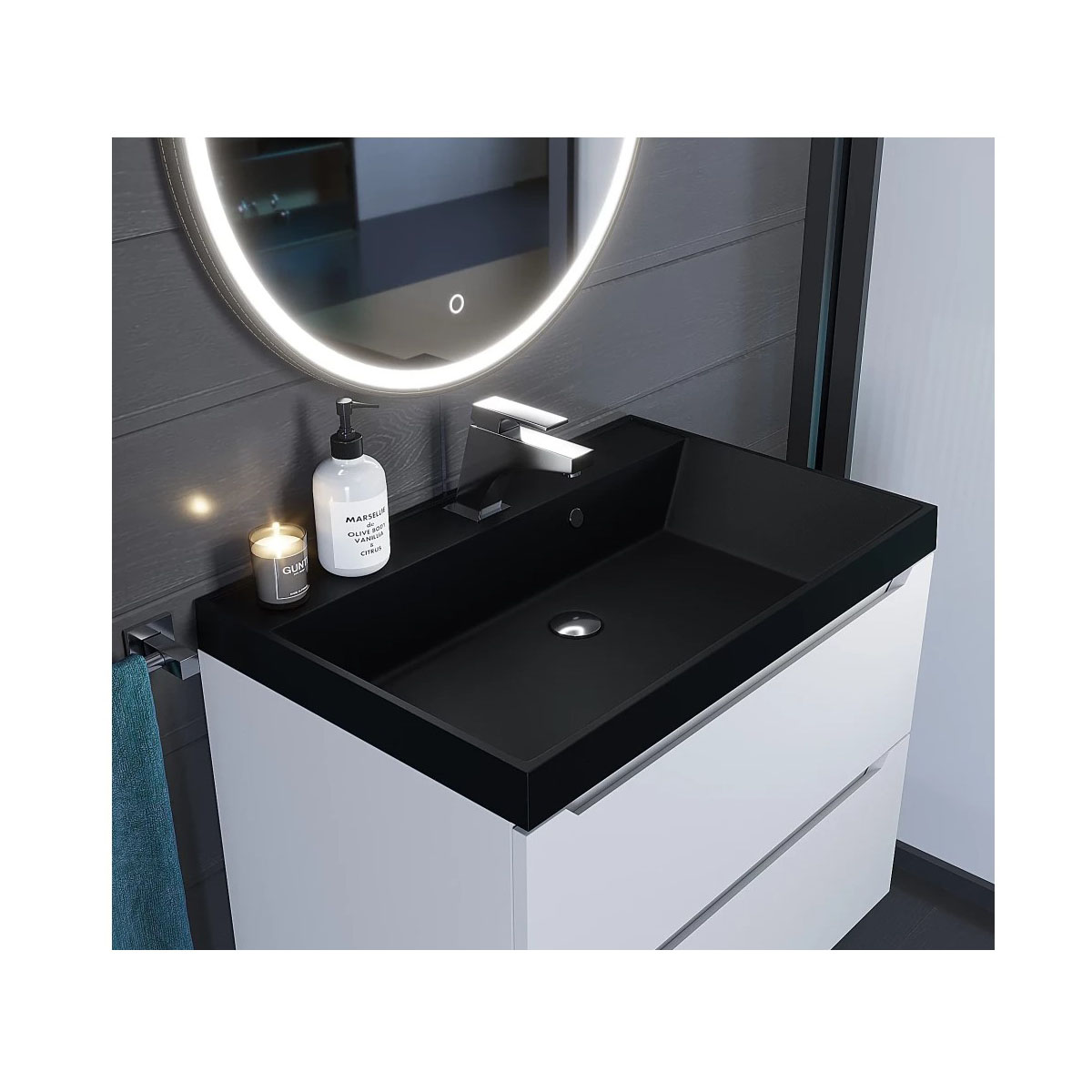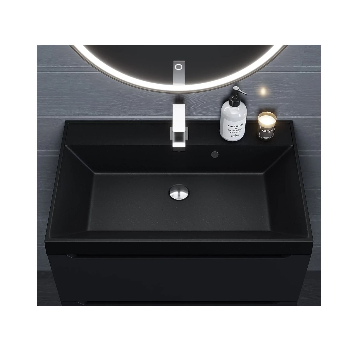 Раковина кварцевая для ванной Uperwood (Упервуд) Classic Quartz, 70 см, черный матовый, космос 291030017