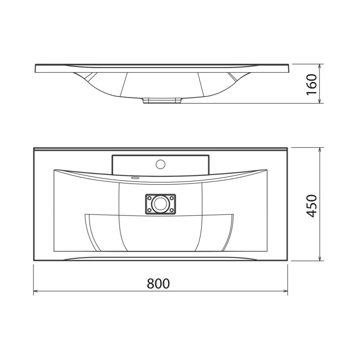 Раковина кварцевая для ванной Uperwood (Упервуд) Elen Quartz, 80 см, прямоугольная, черный матовый, уголь 297000019