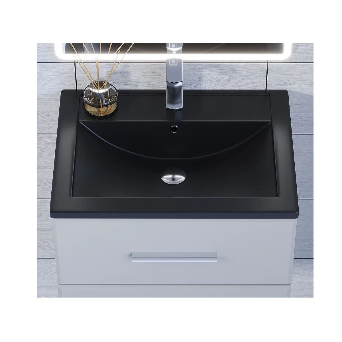 Раковина кварцевая для ванной Uperwood (Упервуд) Foster Quartz, 60 см, черный матовый, уголь 291030053