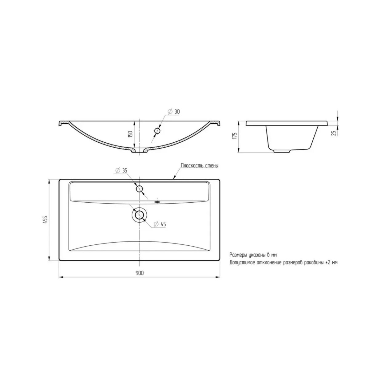 Раковина кварцевая для ванной Uperwood (Упервуд) Foster Quartz, 90 см, черный матовый, уголь 291030042