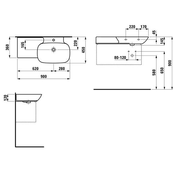 Комплектация:Laufen INO Раковина накладная, 900х450х120мм с 1 отв. под смеситель, полка слева, цвет: белый матовый p>