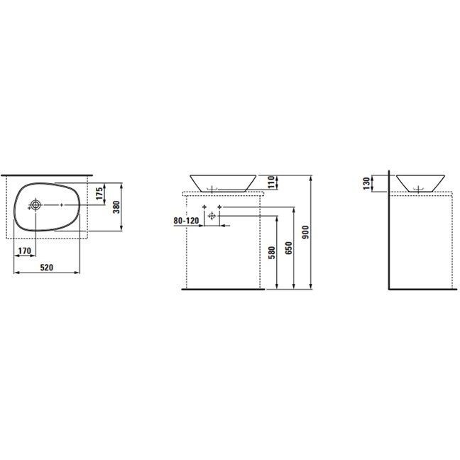 Раковина Laufen (Лауфен) Palomba -чаша 52х38х13 см, без отверстий, без перелива, цвет: белый 8.1680.2.000.112.1