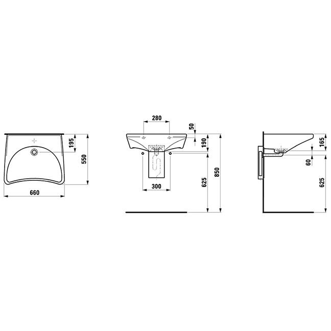 Раковина Laufen (Лауфен) Rehab подвесная, 66x55x16.5см, без барьера, цвет: белый 8.1060.3.000.000.1