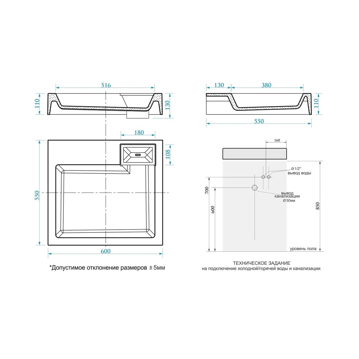 Раковина для установки над стиральной машиной от бренда Uperwood из коллекции Vission представлена в размере 60х55 см. Раковина изготовлена из литьевого мрамора с покрытием гелькоут, которое выполняет как декоративную, так и защитную функцию. Материал гарантирует гигиеническую безопасность изделий и характеризуется высокими бактерицидными свойствами.