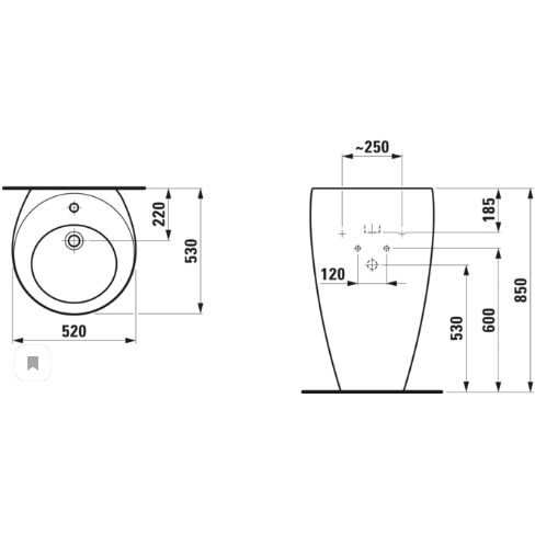 Раковина напольная Laufen (Лауфен) Alessi One пристенная 52х53х85 см, 1 отверстие, покрытие LLC, цвет: белый 8.1197.1.400.104.1