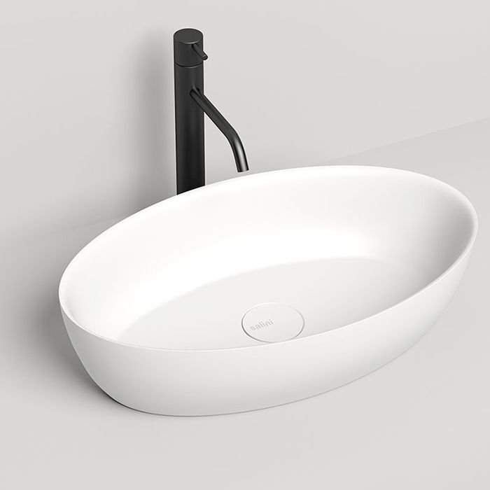 Раковина Salini (Салини) Alda накладная  58х35х15cм, без отверстий, без перелива, S-Sense, цвет: белый глянцевый 110611G