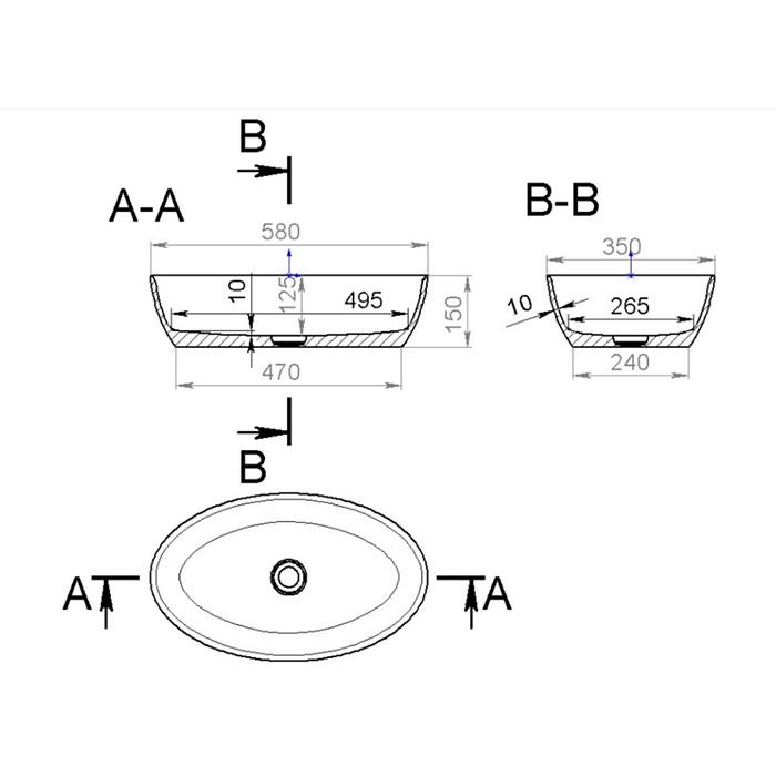 Комплектация:Salini Alda Раковина накладная 580х350х150мм, без отв. под смес, без перелива, мат-л: S-Sense, глянцевый, белый. p>