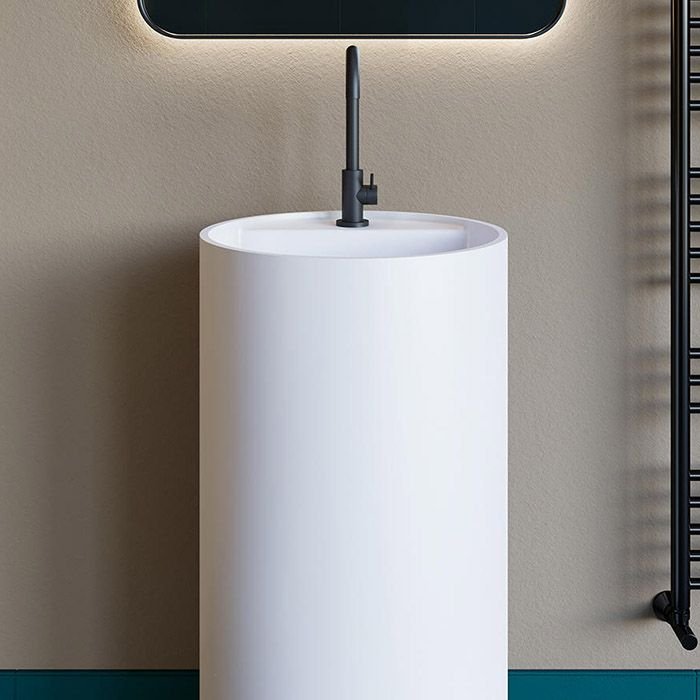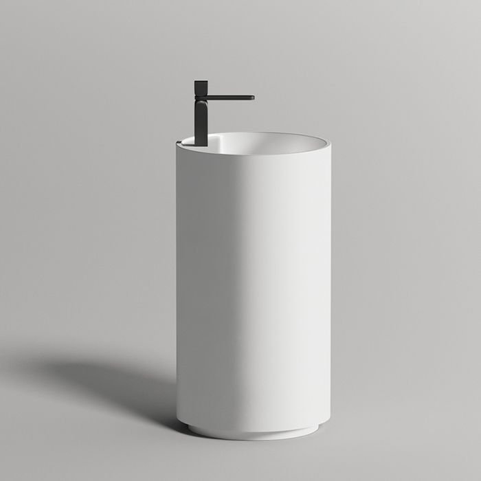 Раковина Salini (Салини) Armonia TOP 201 напольная 47х47х87cм., с 1 отверстие, донный клапан and Up and Down and , сифон, материал: S-Sense, цвет: белый глянцевый 130115G/слив в пол
