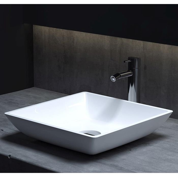 Раковина Salini (Салини) Callista накладная 38х38х8.5cм, без отверстий, без перелива, S-Sense, цвет: белый глянцевый 1101108G