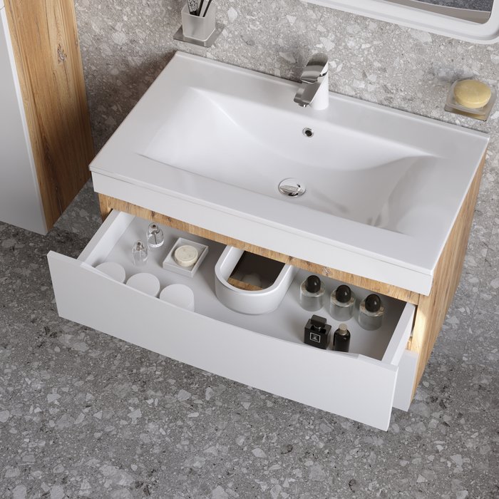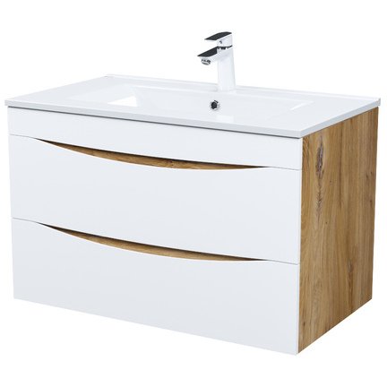Тумба с умывальником Iddis (Иддис) Cloud подвесная 80 см белая/золотистый дуб CLO80Y0i95K подходит ум. 0138000i28