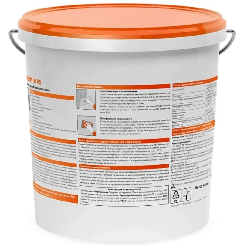 C июня 2017 года шпаклвка Ceresit CT 95 заменена всесезонной шпаклвкой для внутренней отделки Ceresit IN 95.