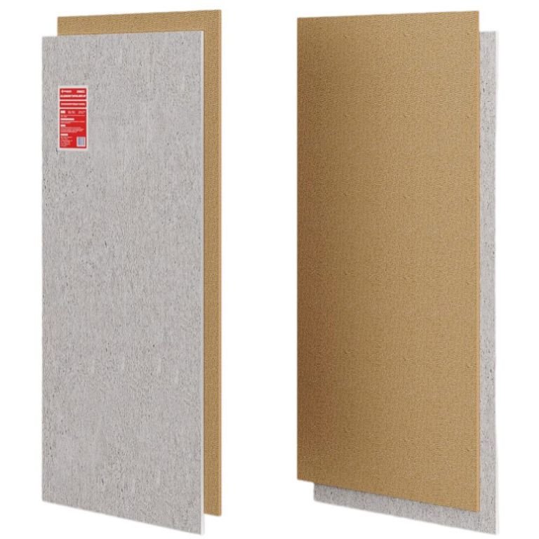 Состав:Первый слой – гипсоволокнистый лист (10мм); Второй слой – звукопоглощающий материал из древесного волокна. p>