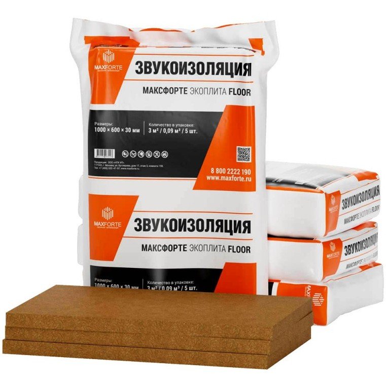 Звукоизоляционные плиты Maxforte (Максфорте) Экоплита Floor 1000х600х30 мм, 5 шт (110 кг/м3; 0.09 м3; 3 м2)
