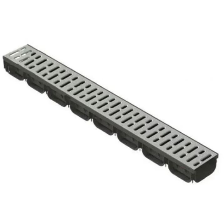Лоток водоотводный Spark (Стандартпарк) ЛВ-10.14.07-ПП пластиковый с решеткой стальной оцинкованной (комплект) 1000х125х70 мм
