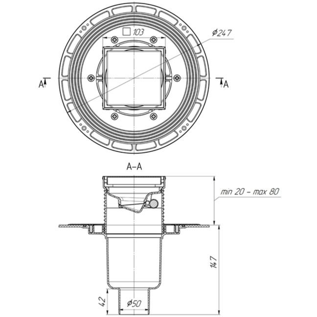 Трап Bronze de Luxe (Бронз Де Люкс) вертикальный выход, магнитный сухой затвор, дизайн-решетка Дракон 21986-5902 бронза
